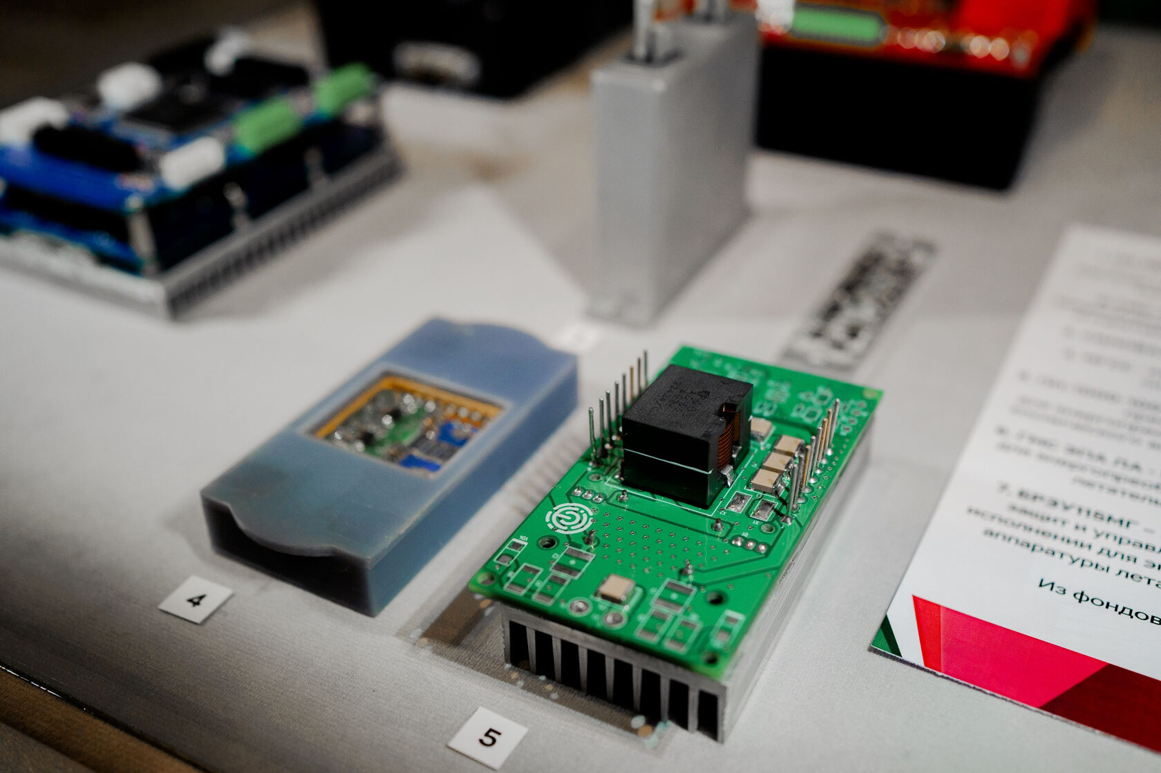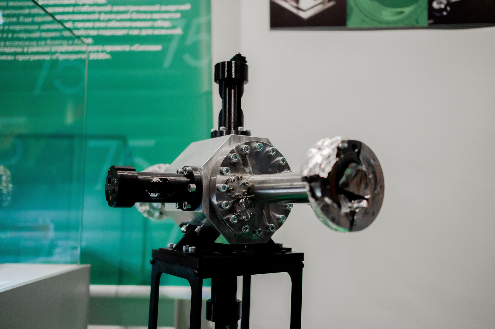 Центральное место второго зала, посвященного современному этапу развития вуза, занимает участие университета в крупнейших проектах технологического лидерства. Здесь представлены разработанные в рамках программы «Приоритет-2030» уникальные высокотехнологичные научные приборы для ЦКП «СКИФ», линейка инновационных биогелей, преобразователи энергии для спутников и блоки регулирования напряжения для самолетов.