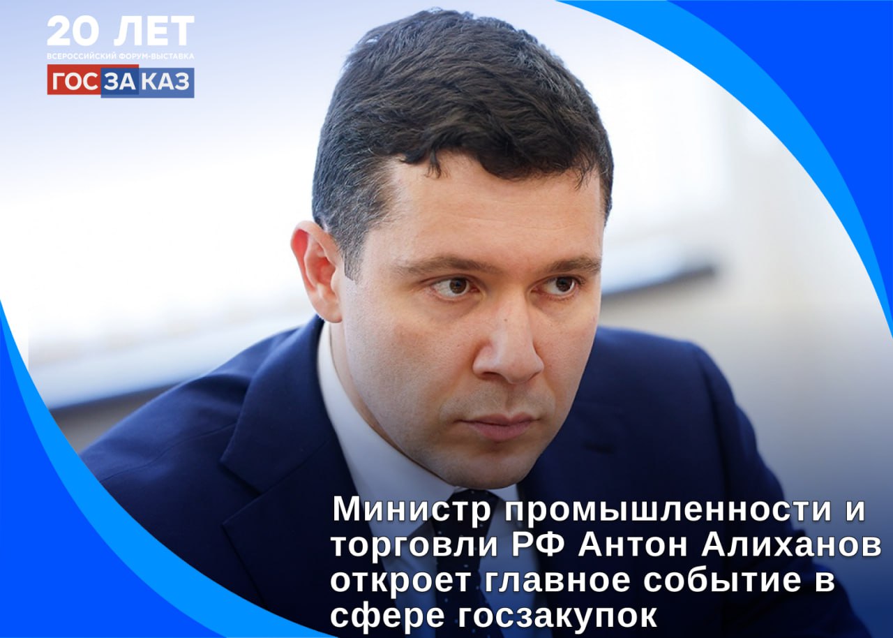 Министр промышленности и торговли РФ Антон Алиханов откроет главное событие в сфере госзакупок — XX Всероссийский форум-выставку «Госзаказ».