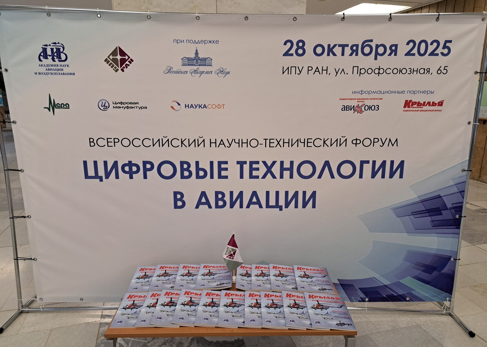 28 октября 2025 года Академия наук авиации и воздухоплавания (АНАиВ) совместно с Институтом проблем управления им. В. А. Трапезникова РАН (ИПУ РАН) при поддержке Российской академия наук (РАН) проводит всероссийский научно-практический Форум «Цифровые технологии в авиации», который состоится в ИПУ РАН по адресу: г. Москва, ул. Профсоюзная, д. 65.