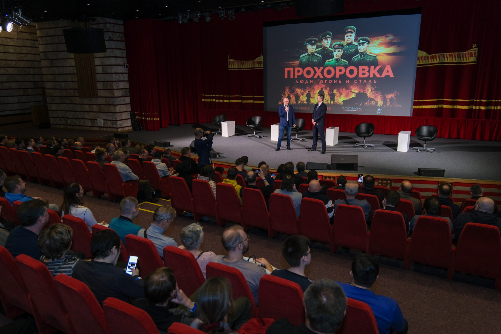 На премьере присутствовали режиссер фильма Владимир Морозов, автор сценария Михаил Тимин, а также участники проекта - кандидат исторических наук Алексей Исаев и доктор исторических наук Валерий Замулин.