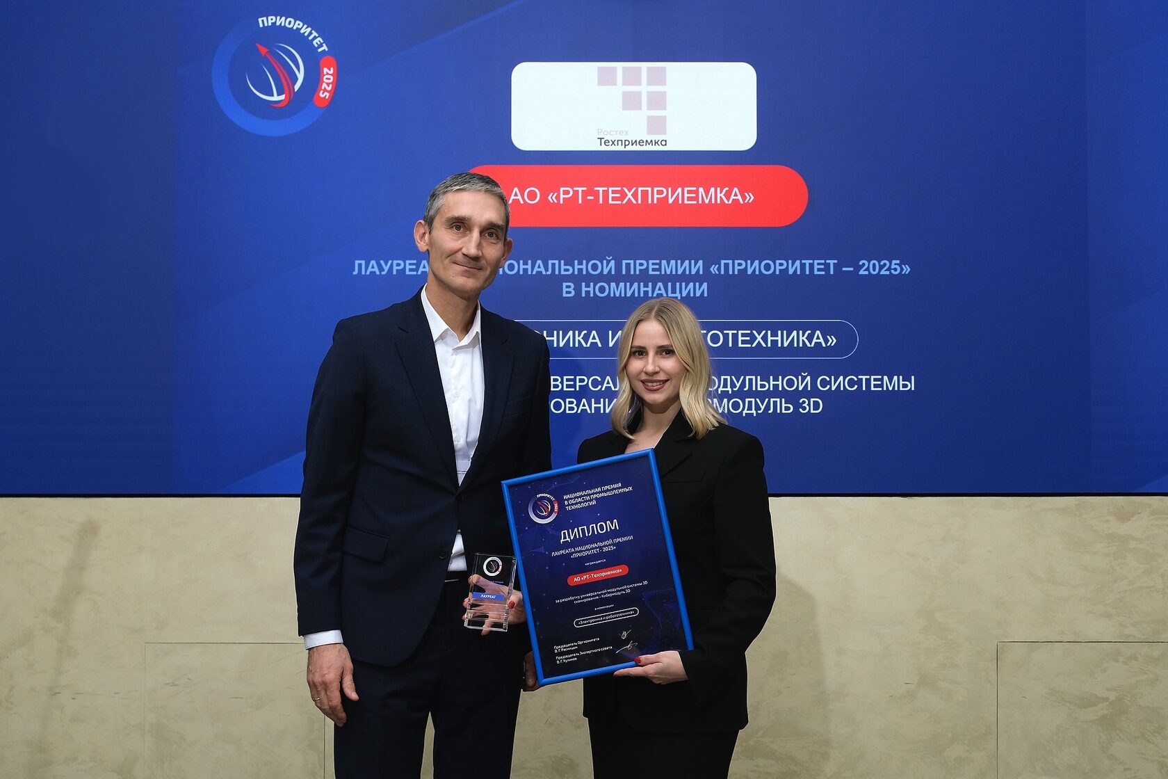 «РТ-Техприемка» Госкорпорации Ростех стала лауреатом премии «Приоритет-2025». Награды удостоена собственная разработка компании – роботизированный комплекс «Кибермодуль 3D», победивший в номинации «Электроника и робототехника». Премия присуждается за достижения в области создания импортонезависимых высокотехнологичных решений для промышленности. Церемония награждения победителей состоялась 25 ноября в Москве в Общественной палате РФ.