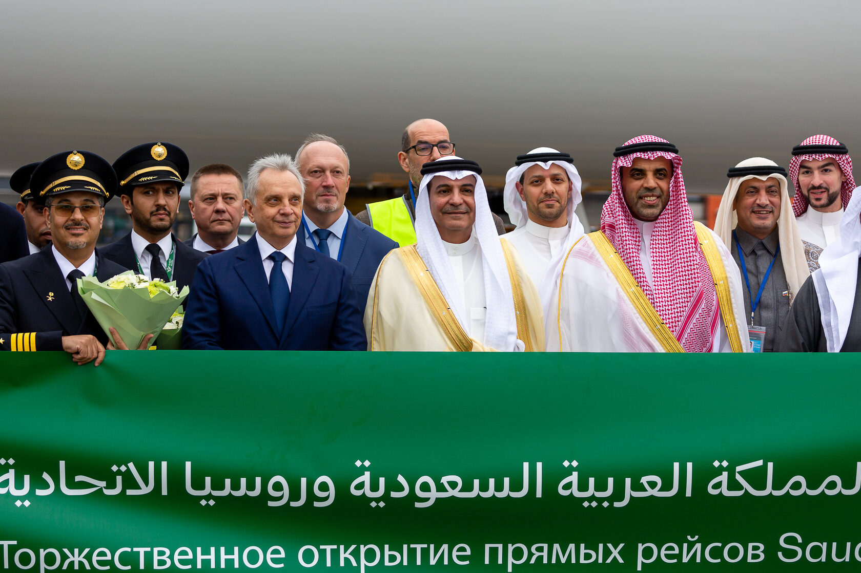По случаю начала полетов в аэропорту Шереметьево состоялась официальная церемония с участием Его Превосходительства Посла Королевства Саудовская Аравия в Российской Федерации г-на Сами Альсадхана, Генерального директора АО «МАШ» М.М. Василенко, Его Превосходительства Генерального директора Saudia Group г-на Ибрагима Аль-Омара, представителей высшего руководства АО «МАШ» и авиакомпании.