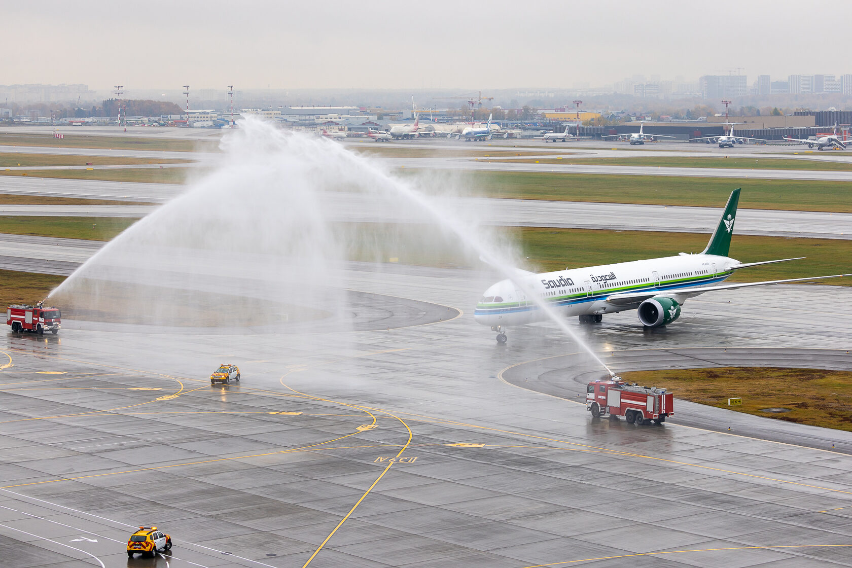 Пассажирам первого прибывшего рейса авиакомпании Saudia в аэропорту Шереметьево было предоставлено первоклассное обслуживание и обеспечен высший уровень гостеприимства в атмосфере радушия. Первый рейс был встречен традиционным водным салютом. На перроне под бортом прибывшего воздушного судна прошла торжественная церемония приветствия с участием высшего руководства аэропорта Шереметьево и авиакомпании Saudia.