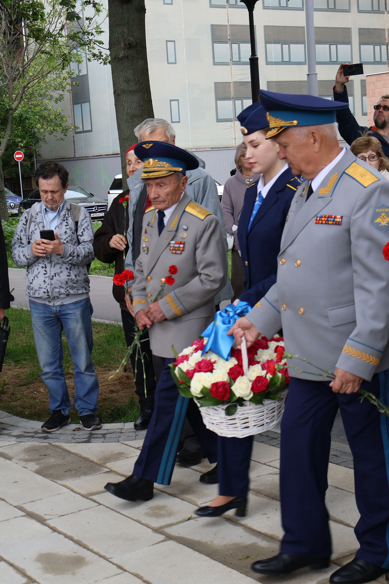 Церемония открытия завершена. Сотрудники ВВИА им.проф. Н.Е.Жуковского, присутствующие на открытии памятника