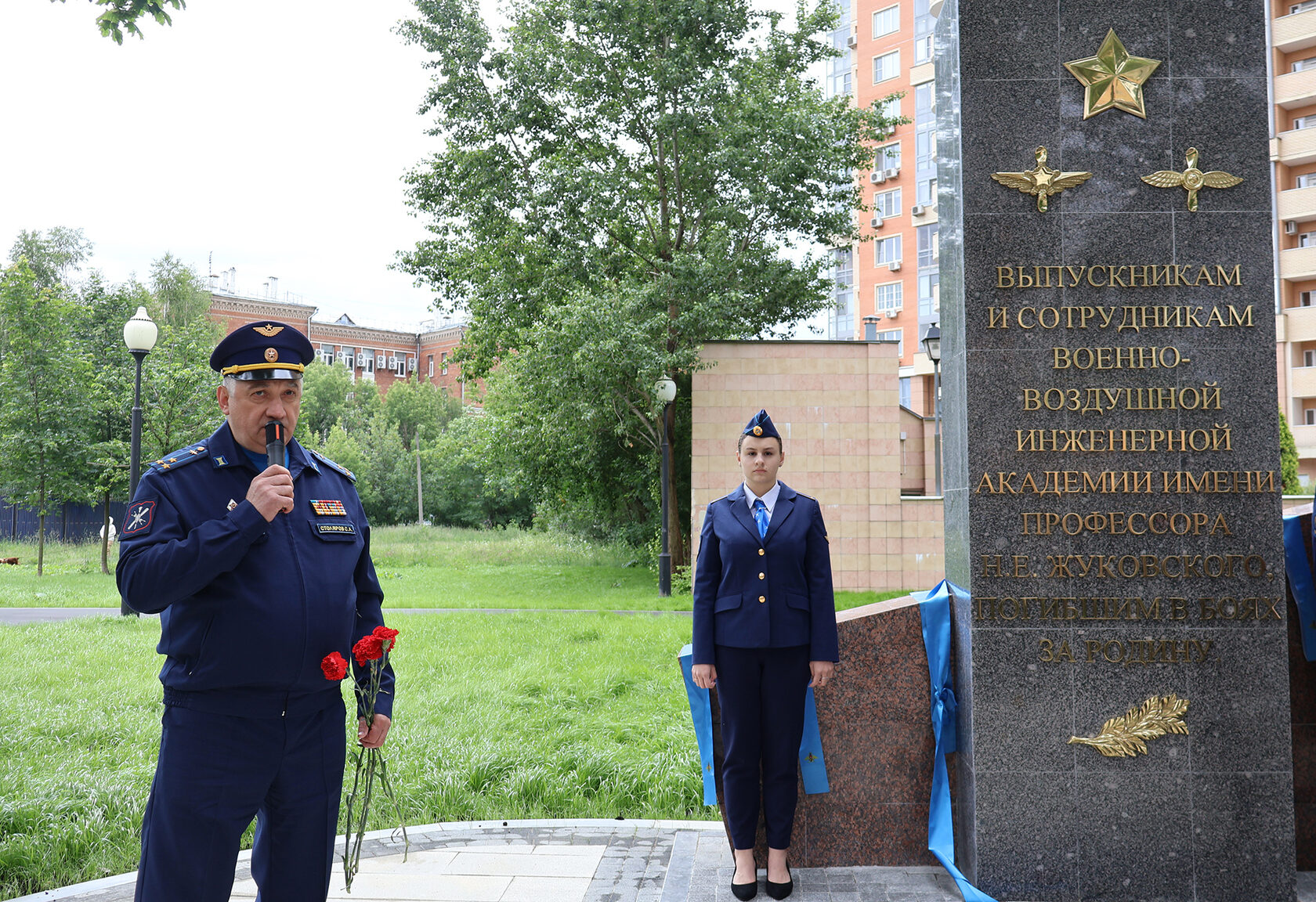 Накануне 84-годовщины со Дня памяти и скорби возложили цветы у памятника выпускникам и сотрудникам ВВИА им.проф. Н.Е.Жуковского, погибшим в Великую Отечественную войну