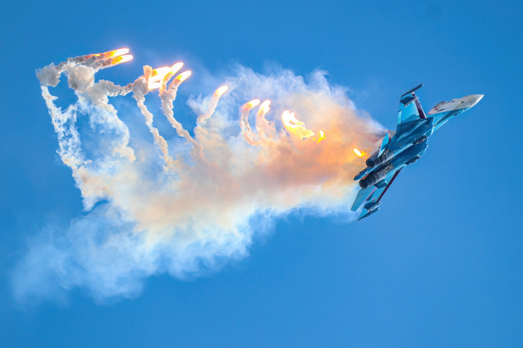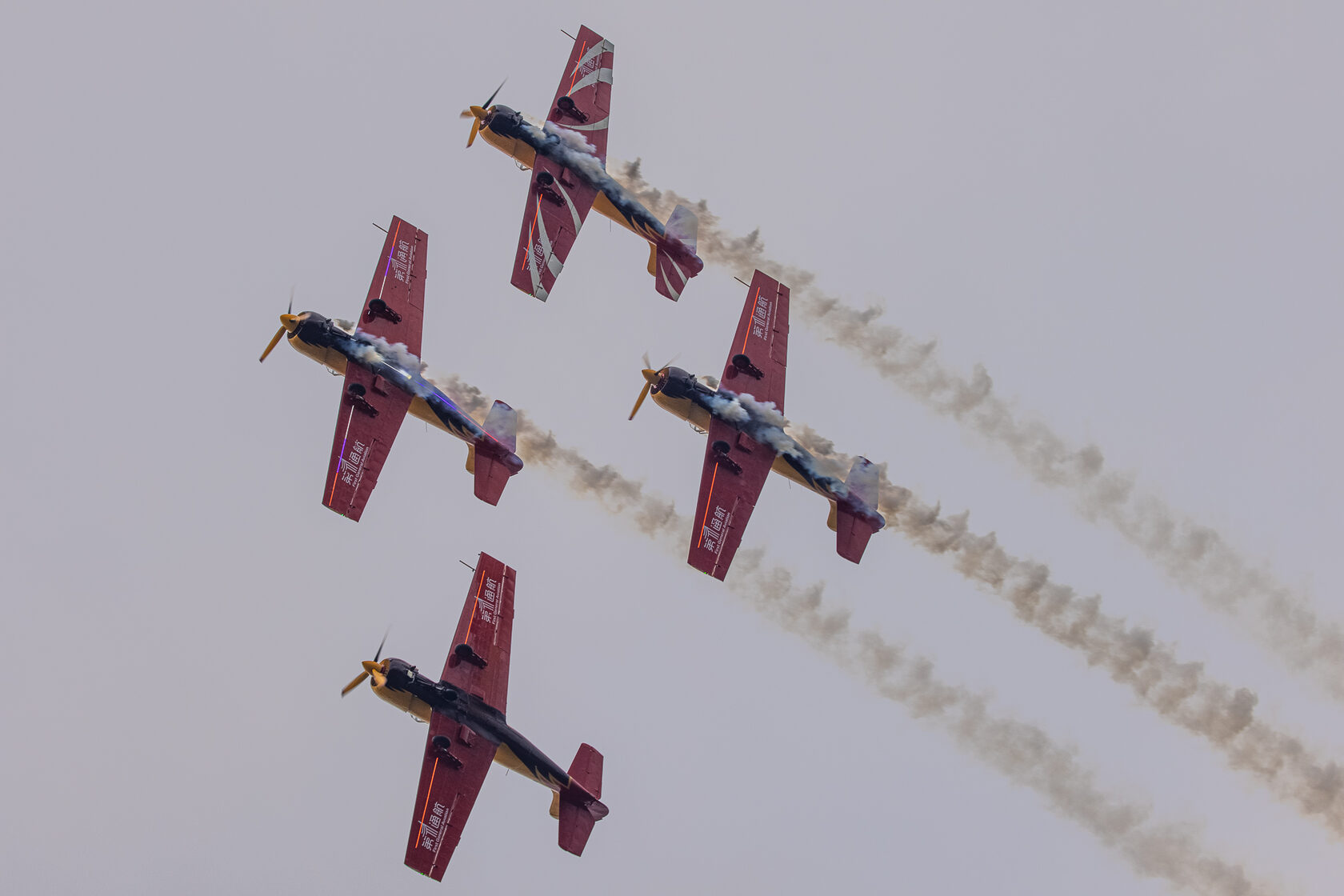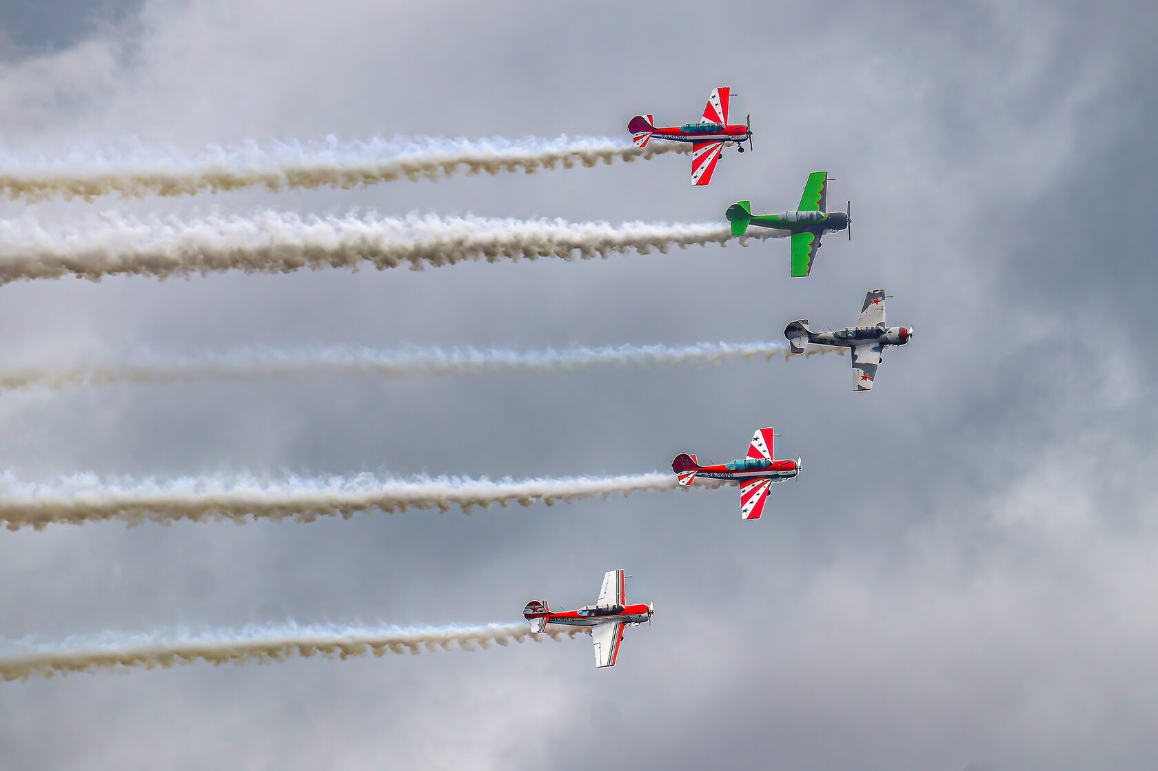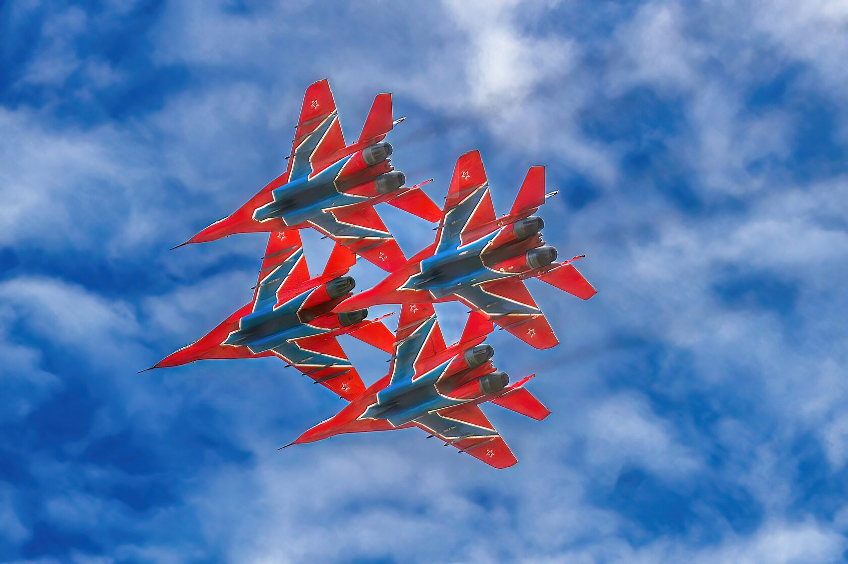 «После доразведки погоды ведущий группы Андрей Алексеев принял решение и согласовал полет на полтора часа раньше запланированного времени. Это позволило выполнить программу, хотя и в сокращенном варианте - без вертикальных фигур, но не менее зрелищно». Во второй день они выступили уже с полной программой.