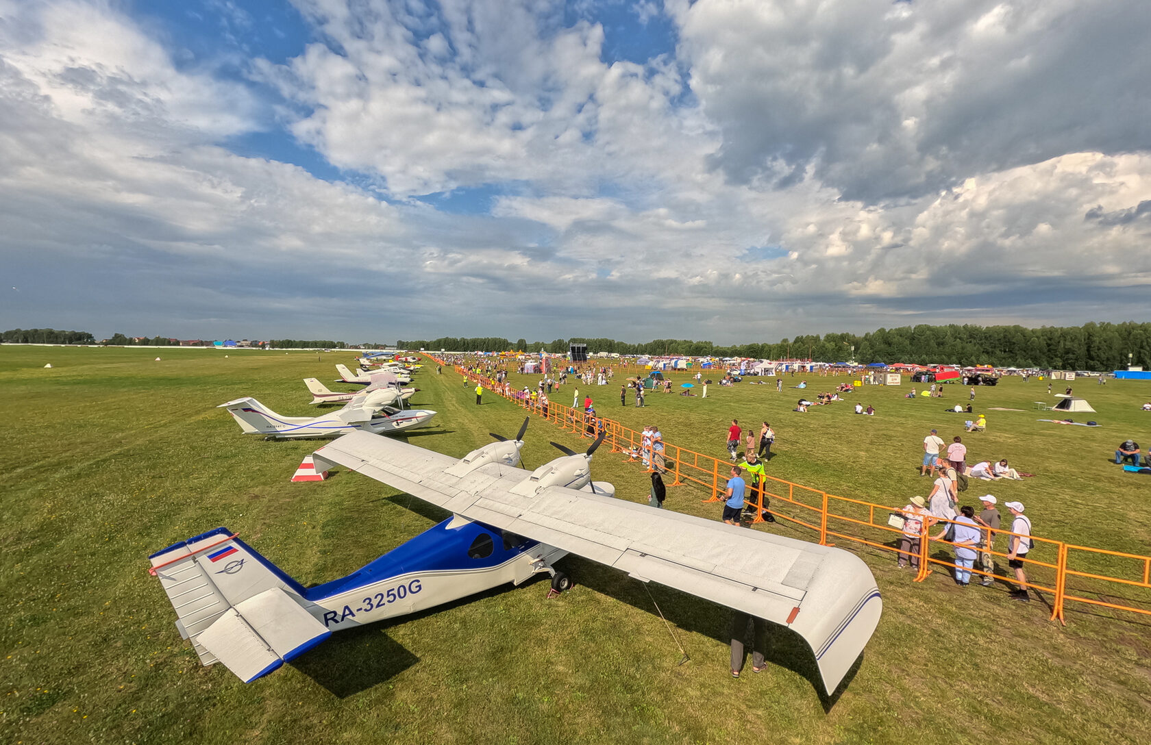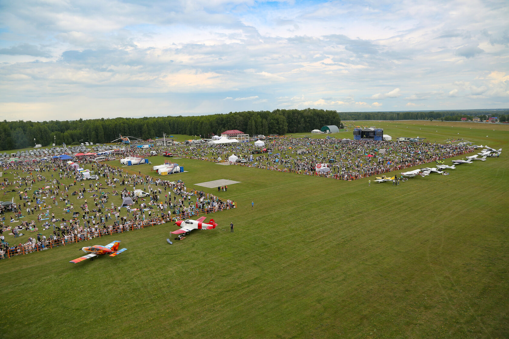 В первый день программа должна была проходить до позднего вечера. Но её пришлось прервать из-за обрушившегося сильного ливня. До 18 часов была выполнена основная часть авиационной программы, но крайнее выступление АГВП «Русские Витязи» было перенесено из-за наступающего грозового фронта и полёт прошел в очень сложных метеоусловиях. Группа из Международного аэропорта Новосибирск Толмачево уже вылетала в дождь.