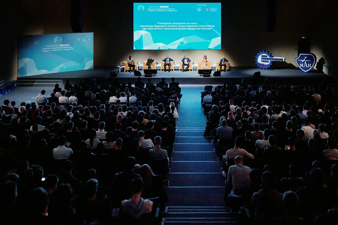 Во второй день форума прошла пленарная сессия «Инженер будущего в эпоху искусственного интеллекта: как обеспечить технологическое лидерство России». В этом году она приобрела интерактивный формат: участники задавали вопросы, голосовали через QR-коды и видели результаты в реальном времени. Обсуждение строилось вокруг трёх направлений - авиации, космоса и кадров, объединённых идеей осмысления роли искусственного интеллекта в инженерии: помощник он, партнёр или конкурент.