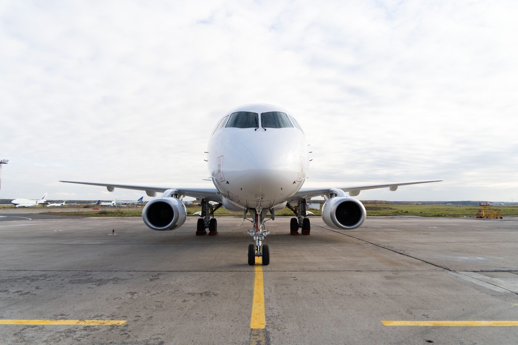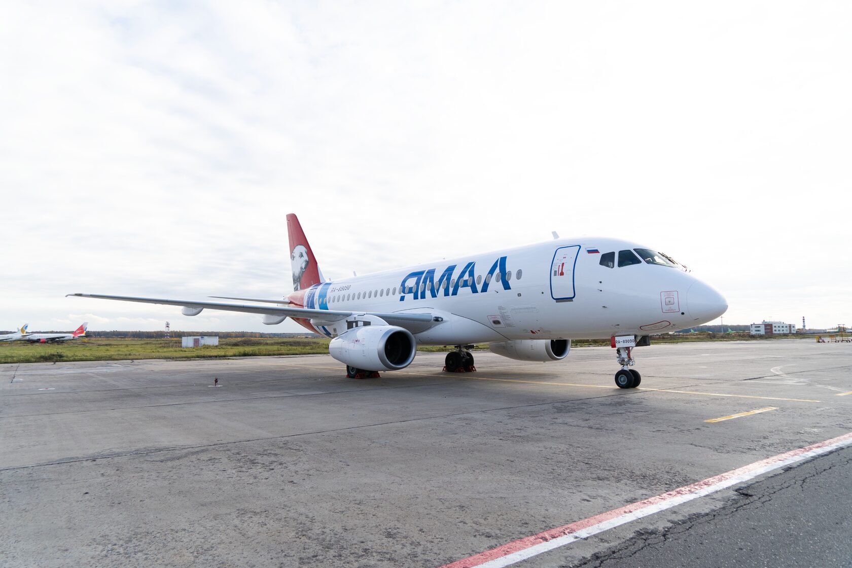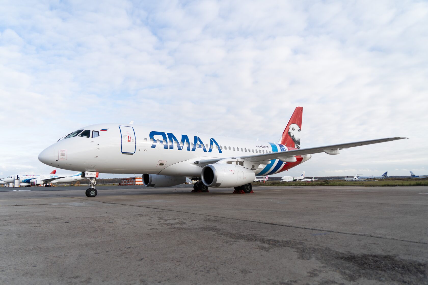 Аэропорт Домодедово представил фотокорреспондентам обновлённую ливрею авиакомпании «Ямал», нанесённую на самолёт Суперджет 100 с бортовым номером RA-89090.