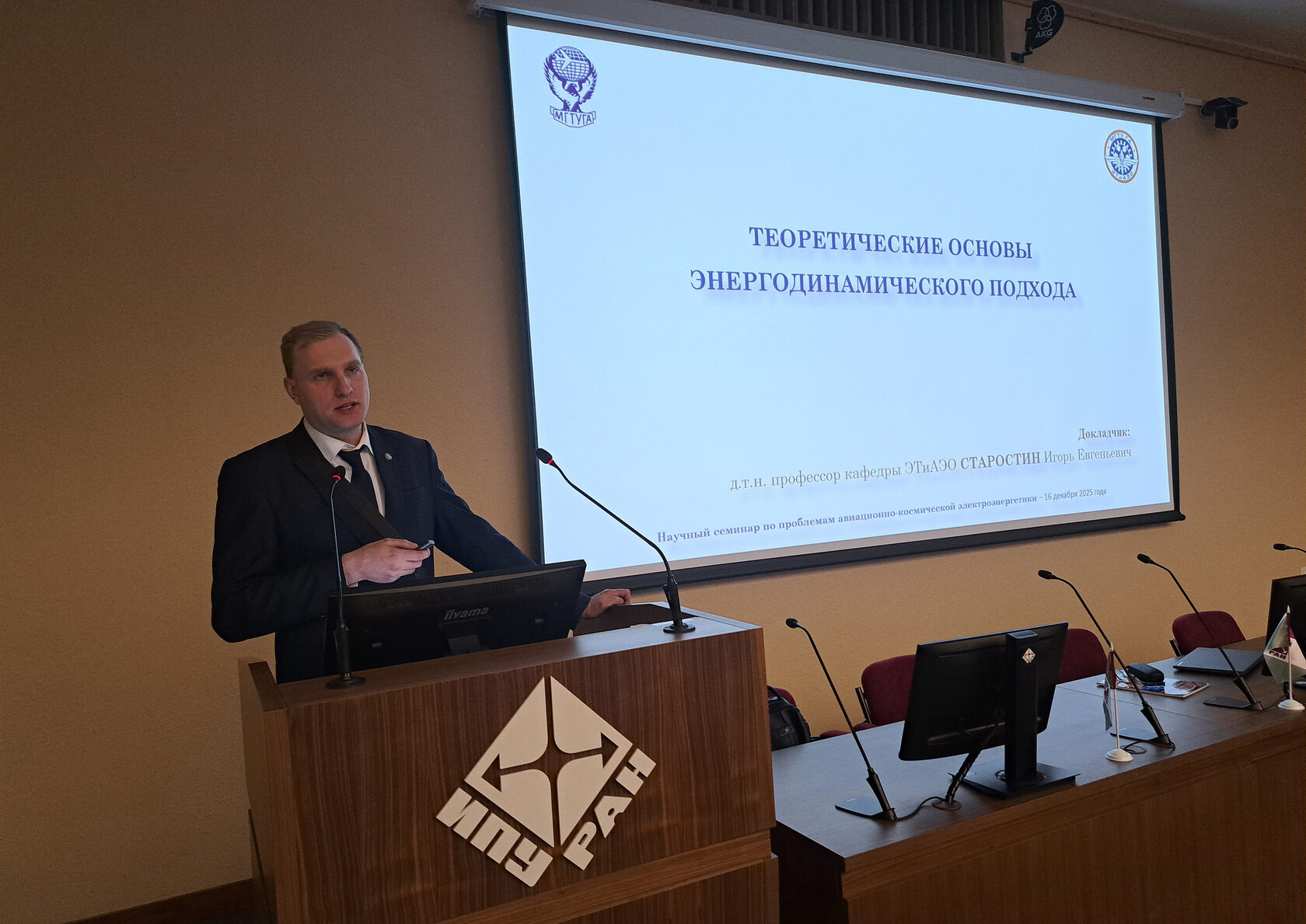 Очередное заседание научного семинара по проблемам авиационно-космической электроэнергетики имени академика В.С. Кулебакина состоялось 16 декабря 2025 года в Институте проблем управления им. В. А. Трапезникова РАН. Тема семинара «Метод математического прототипирования энергетических процессов. От потенциально-потокового принципа до ресурсодинамического подхода» посвящена энергодинамическому подходу к моделированию физических процессов в технических системах.