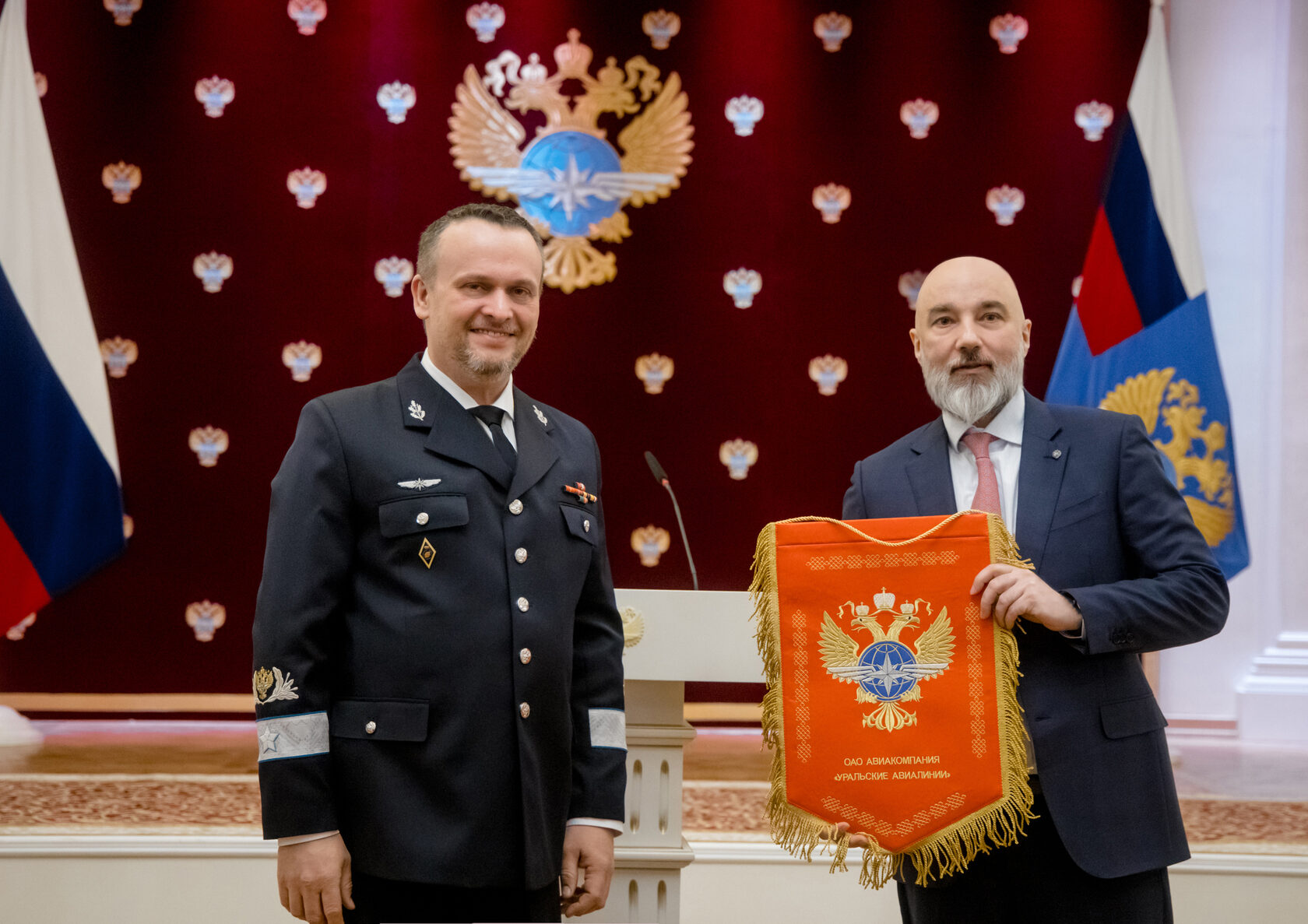 Особым вниманием министр транспорта Андрей Никитин удостоил коллективы, участвовавшие в подготовке и проведении мероприятий 80-й годовщины Победы в Великой Отечественной войне. Ценную награду, именной вымпел, вручили лично генеральному директору авиакомпании «Уральские авиалинии» Кириллу Сергеевичу Скуратову.