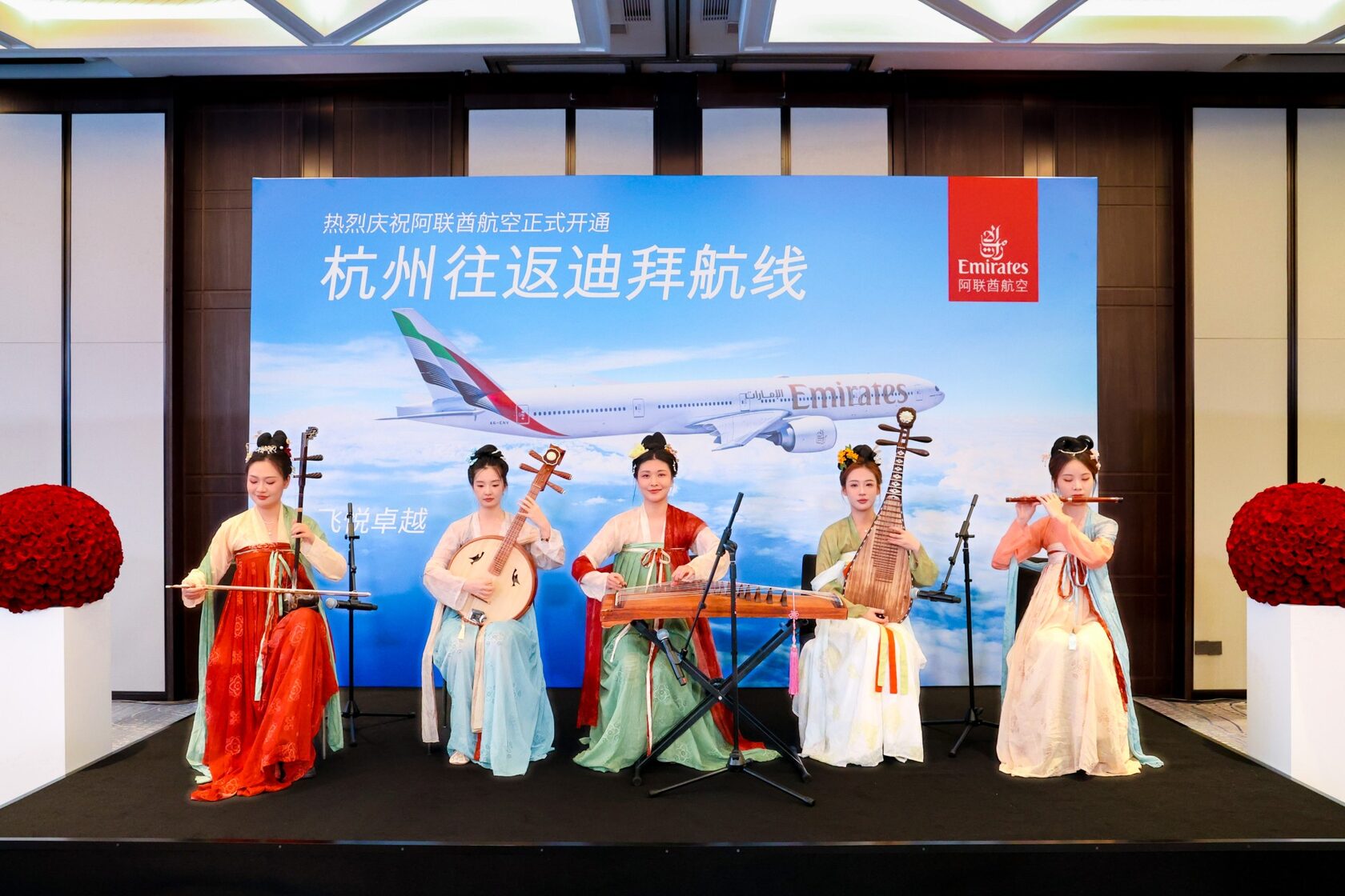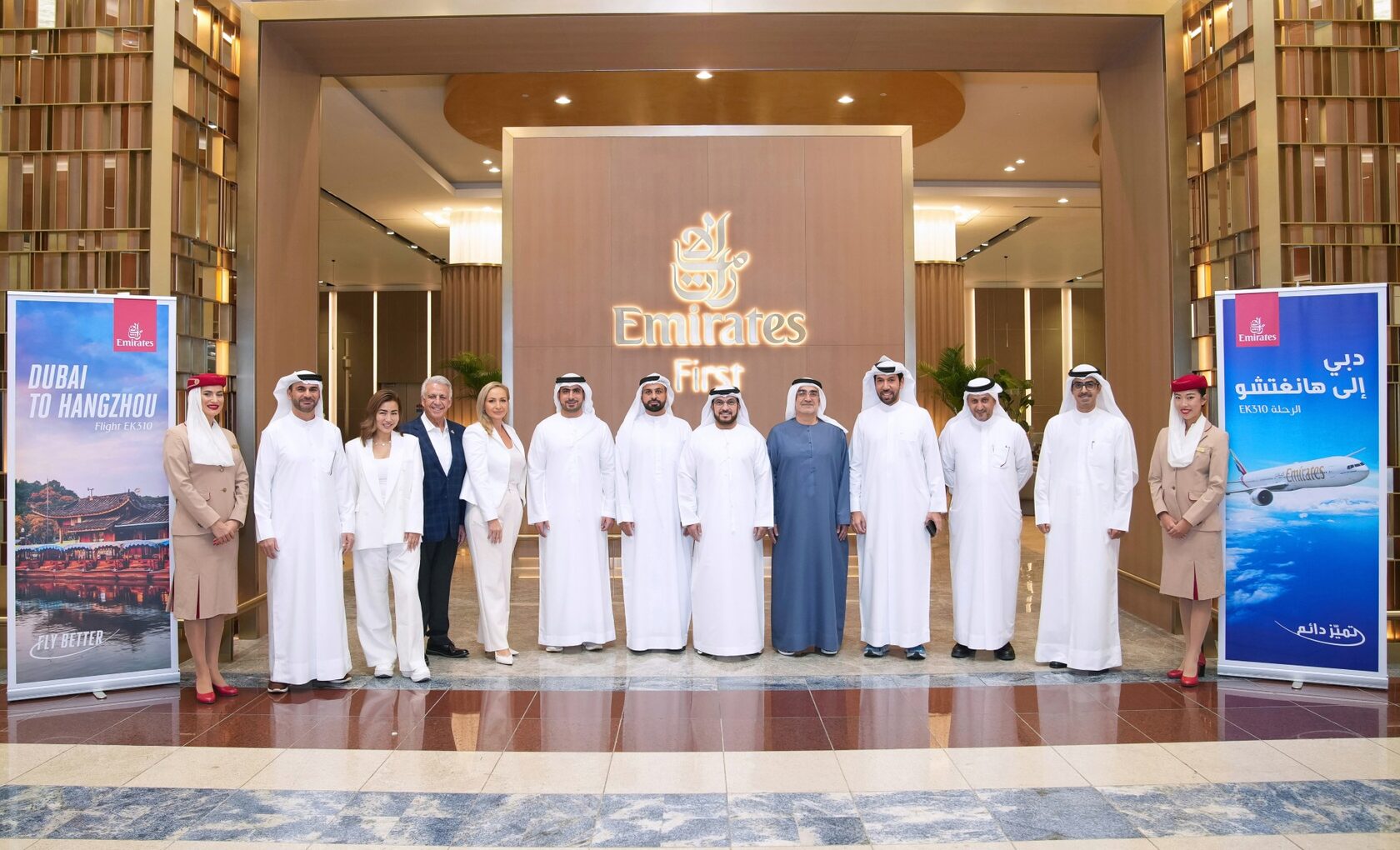 30 июля в Международном аэропорту Ханчжоу-Сяошань приземлился первый рейс EK310 из Дубая. Борт торжественно встретили представители местных властей и администрации аэропорта, а также был организован традиционный водяной салют. В честь открытия направления пассажирам рейса вручили памятные подарки: брелоки, сертификаты и наборы китайского чая.