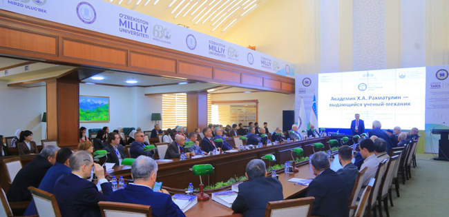 Совместный пленарный доклад научного руководителя ФАУ «ЦАГИ», академика РАН, вице-президента РАН Сергея Чернышева и научного руководителя института океанологии РАН имени П.П. Ширшова, академика РАН Роберта Нигматулина был посвящён выдающемуся механику, академику АН Узбекской СССР Халилу Рахматулину. Обширный круг научных интересов учёного охватывал такие направления, как газовая динамика, аэродинамика проницаемого тела, теория упругих и упругопластических волн, теория парашюта, динамика грунтов, движение многокомпонентных сред, а также расчёт гидротехнических и подземных сооружений. «Результаты исследований в области механики, полученные Халилом Ахмедовичем, стали настоящим достоянием отечественной и мировой науки. Велико и оставленное им наследие как педагога и организатора: академик воспитал целую плеяду выдающихся учёных, среди которых более 150 кандидатов и 20 докторов из РСФСР, Узбекистана и Киргизии, Китая, Польши, Египта и других государств», – отметил Сергей Чернышев.